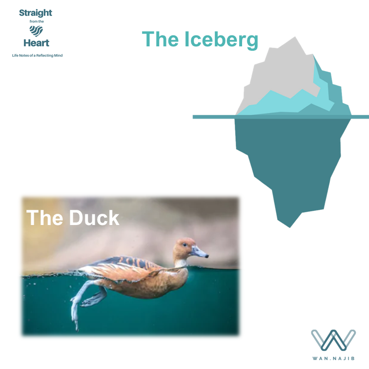 Two famous analogies that best describes this paradoxical situation are the iceberg and duck analogies:
