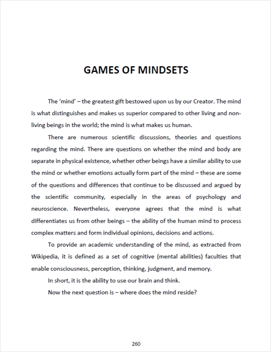 The chapter discusses on the various types of mindsets we can adopt depending on the situation or circumstances.