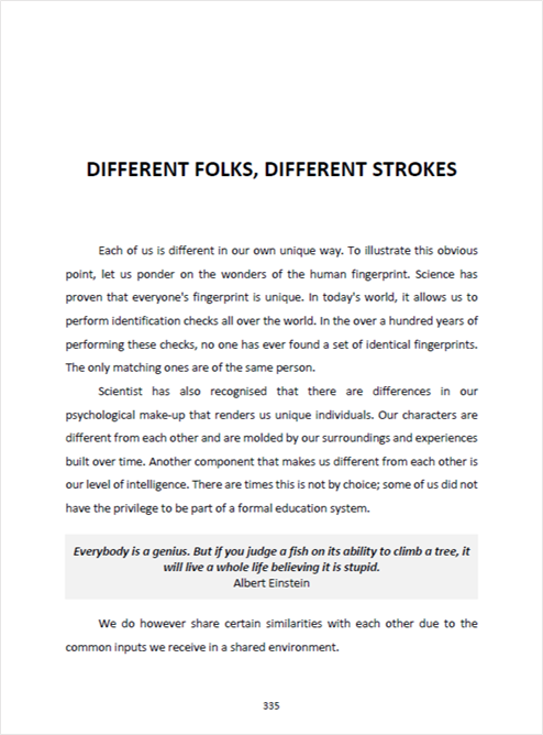 This chapter discusses the importance of approaching people differently suitable to the individuality of person and the given situation. By default not everyone gets us, but if we adopt the right approach, they should be able to understand us better.